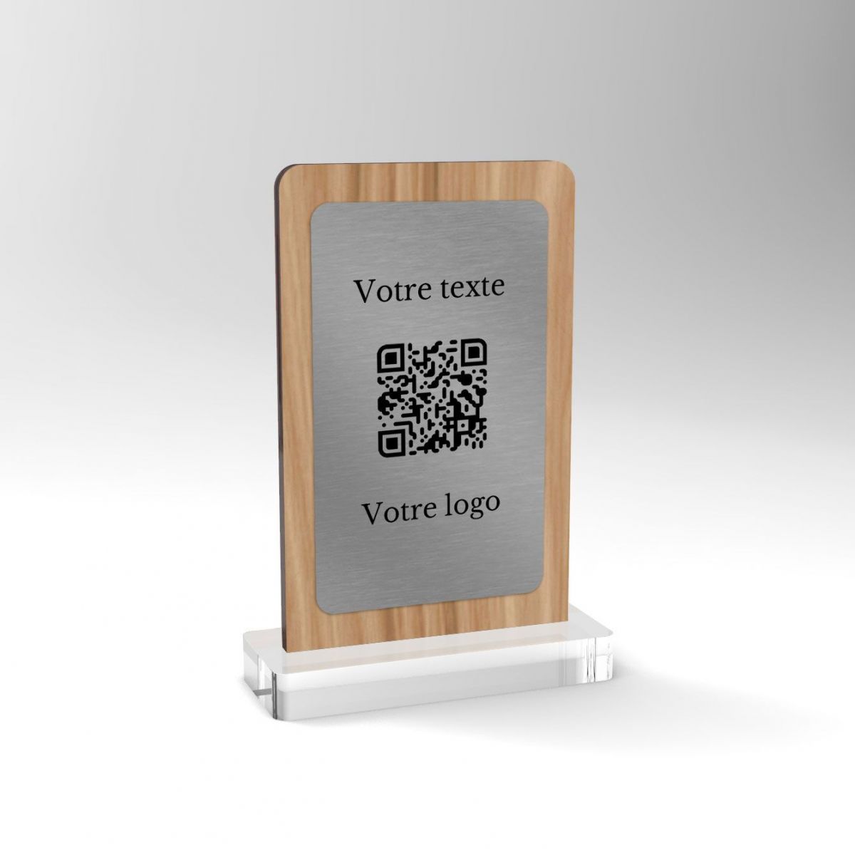 Chevalet chêne inox rectangle - Support QR Code pour restaurant