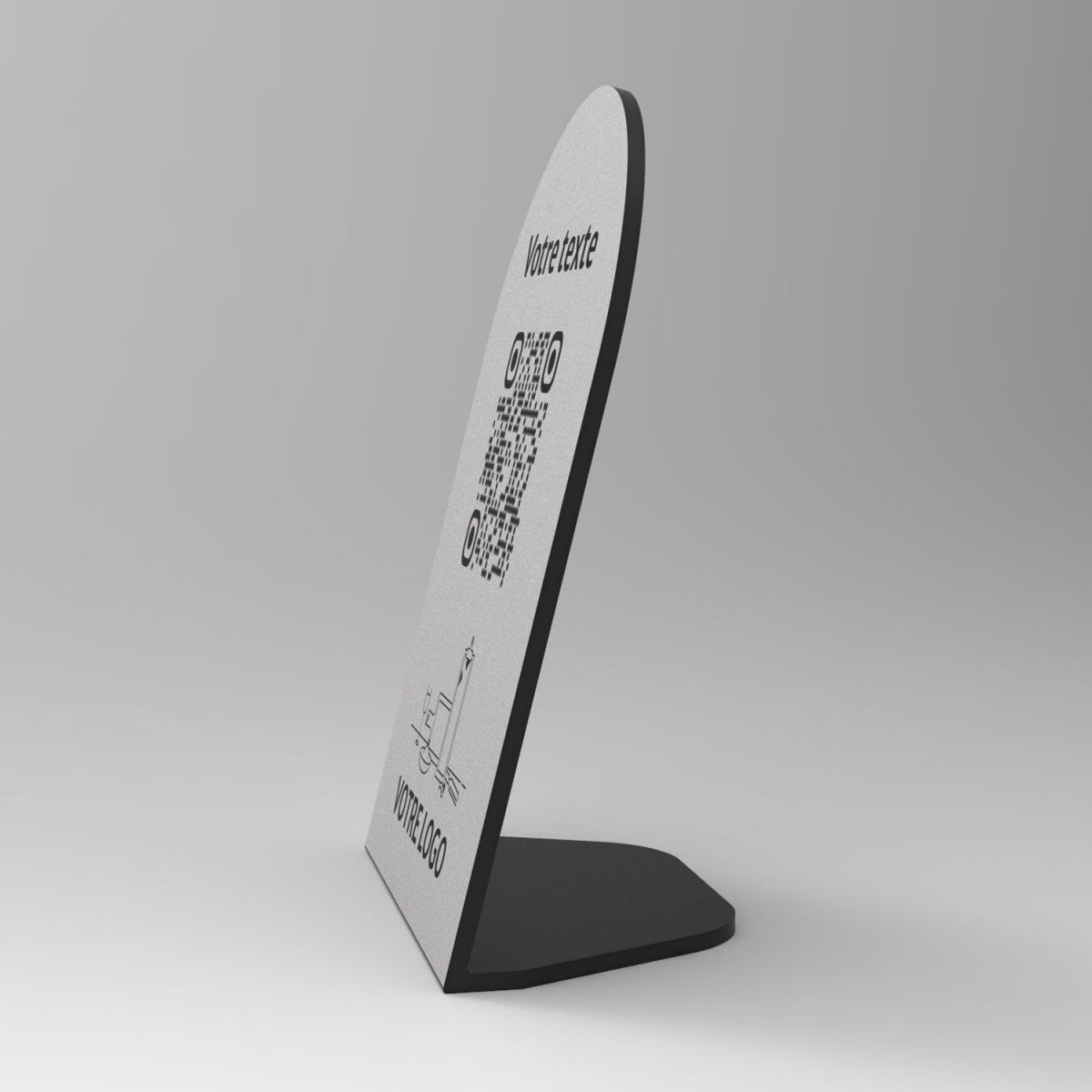 Présentoir incliné aspect inox arrondi - Support QR Code pour restaurant
