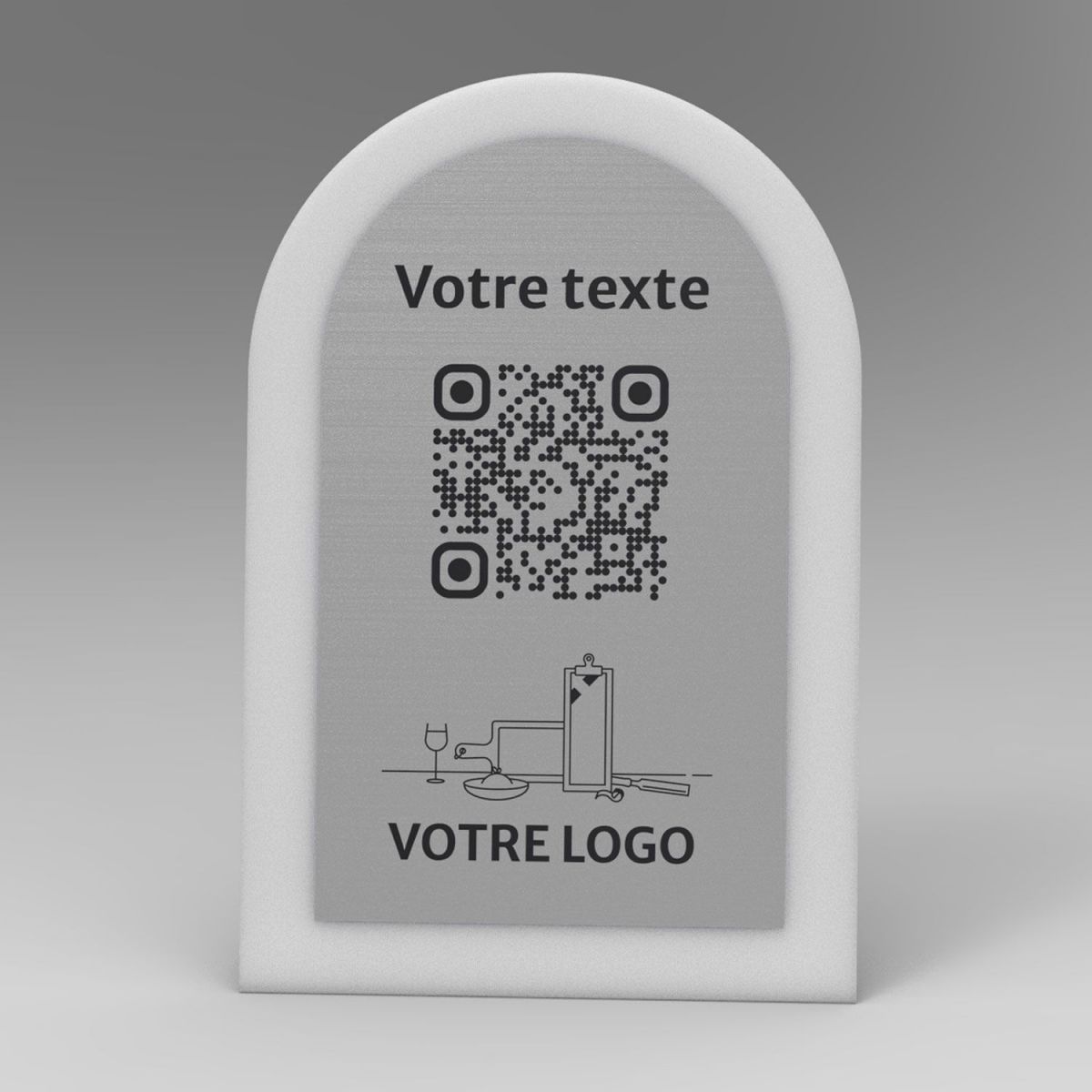 Présentoir incliné givré aspect inox arrondi - Support QR Code en plexiglass pour restaurant