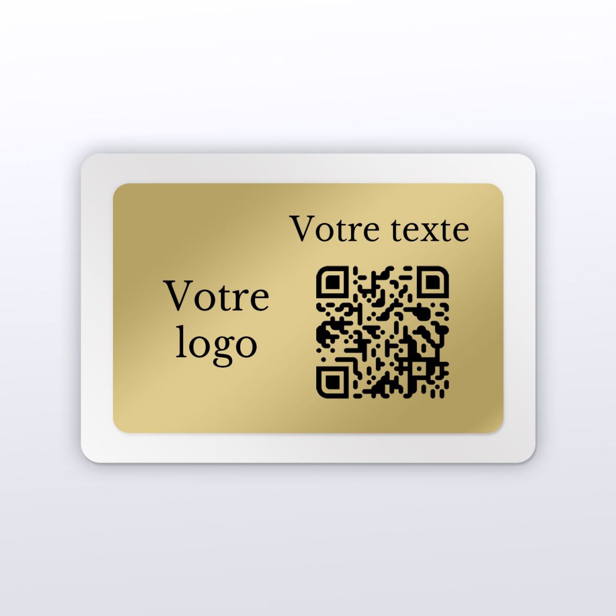 QR Code imprimé sur plexiglass blanc + plaque aspect laiton.